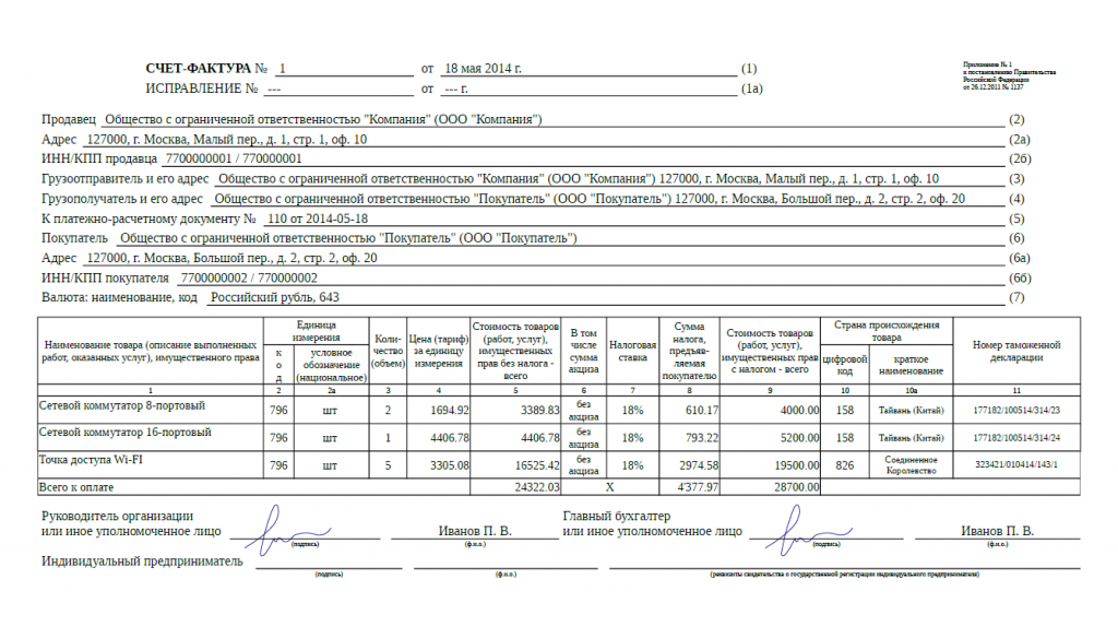 В сети легко можно посмотреть примеры в режиме онлайн или в Ворде. Через эту программу или через Excel получится распечатать бланк на листе для заполнения. Если объект заполнения будет являться услугой или товаром иностранного происхождения, понадобится заполнить на русском языке дополнительные строки. Следует указать номер таможенной декларации и происхождение продукции. Даже если товар поступил со страны Казахстан, Украина или Беларусь, его легко можно оформить через счет-фактуру и образцы из интернета.