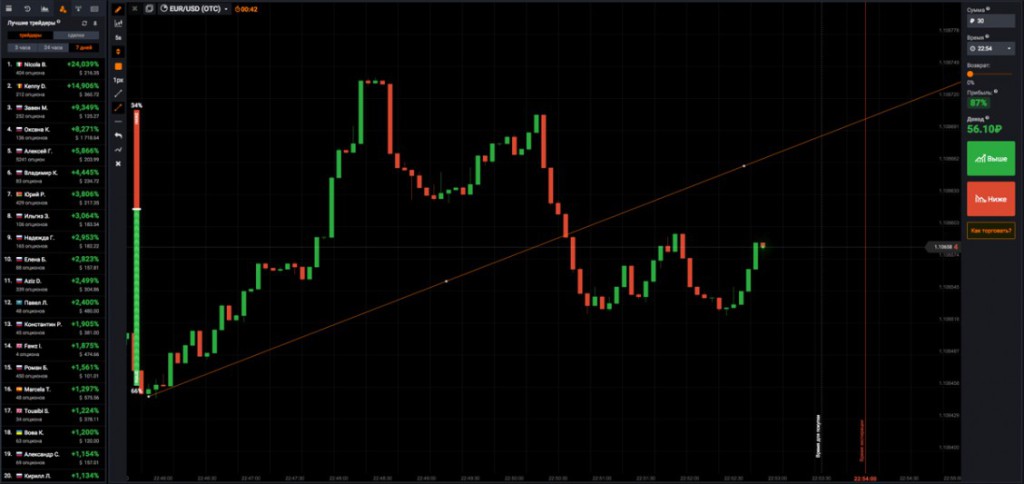 На каком уровне цена задержалась максимально длительный период времени? Визуально очень легко определить данные уровни. При подходе цены актива к этому уровню совершайте покупку либо продажу от него сэкспирацией опциона через 60 секунд. Если мы выбрали верный уровень, цена, либо задержится на нем, либо ненадолго отскочит. В таком случае мы сможем забрать прибыль. Далее торгуем по этой же схеме. Не нужно входить в рынок, если уровни не были сформированы. Не допускайте высоких рисков.